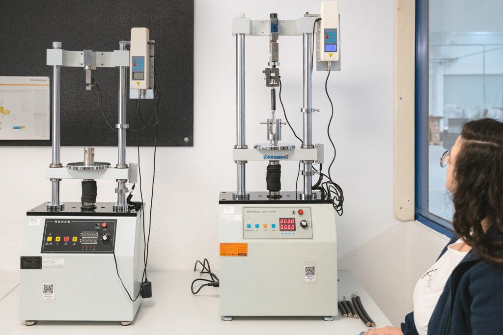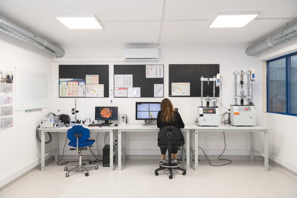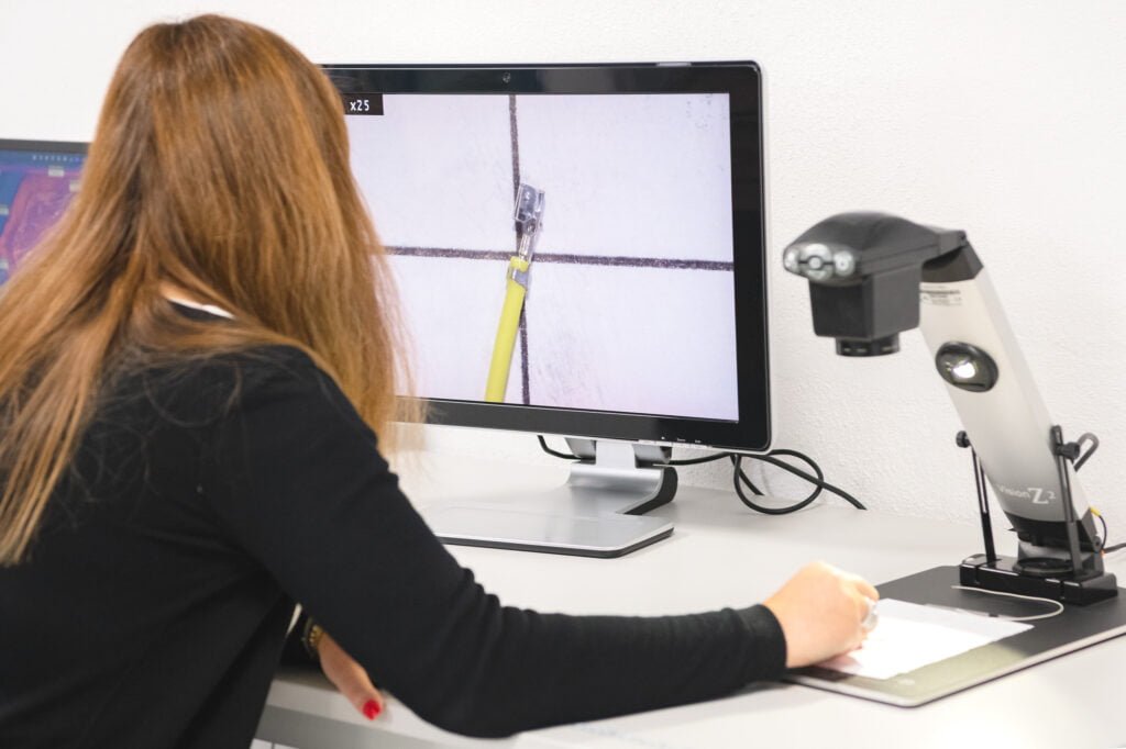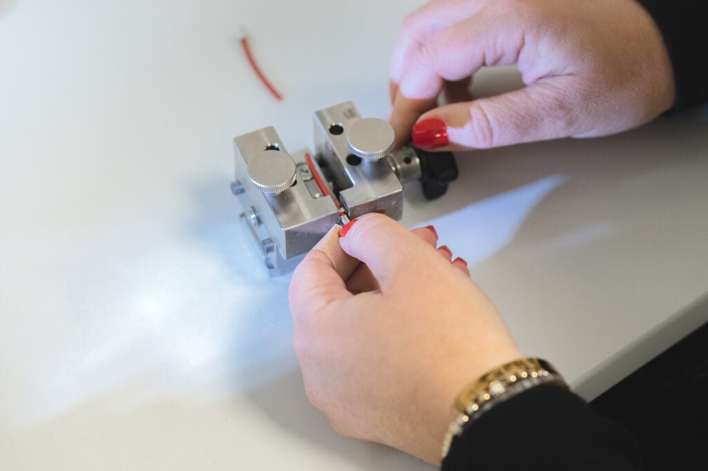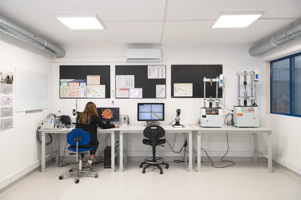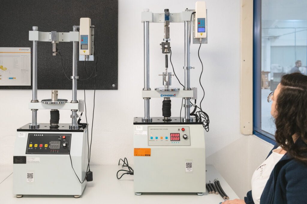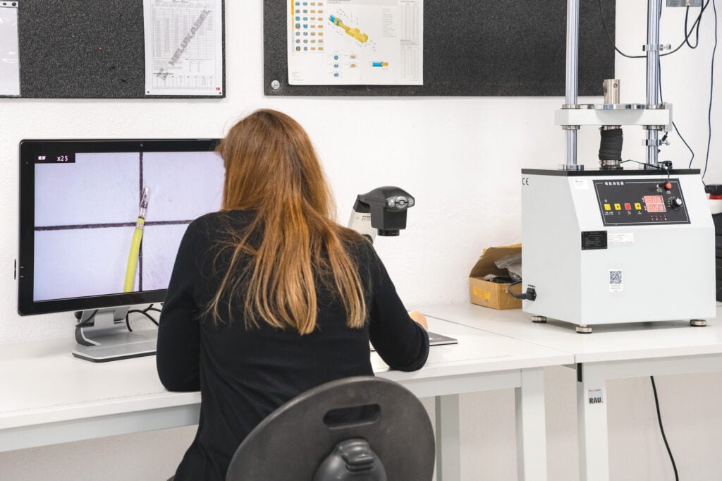 We have our own laboratory, with temperature and humidity recording, where we can carry out micrographic analyses of the crimping tensile and fatigue tests up to 20,000N (2ton) of force, continuity and strength measurements, as well as video inspection with zoom up to 122x magnification.