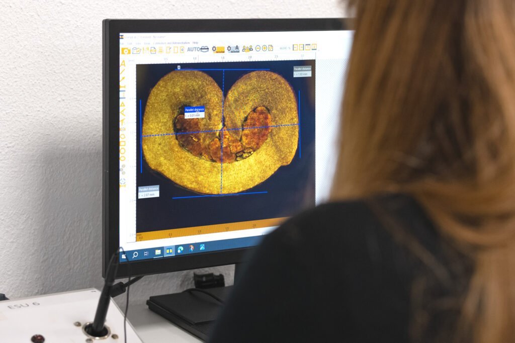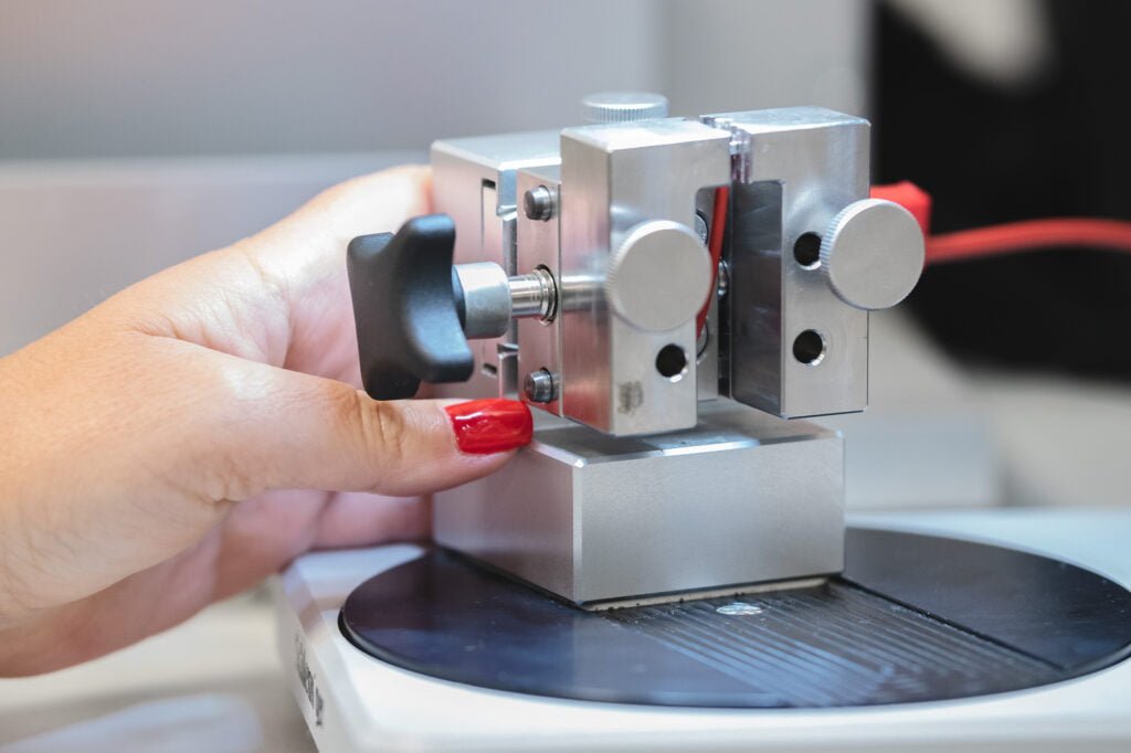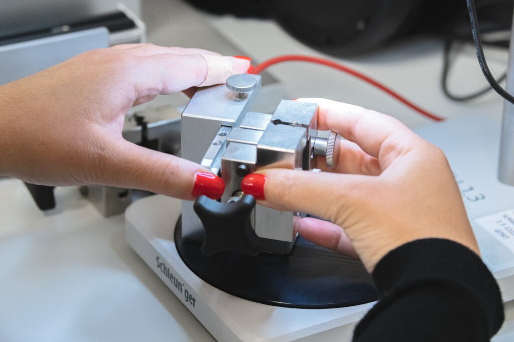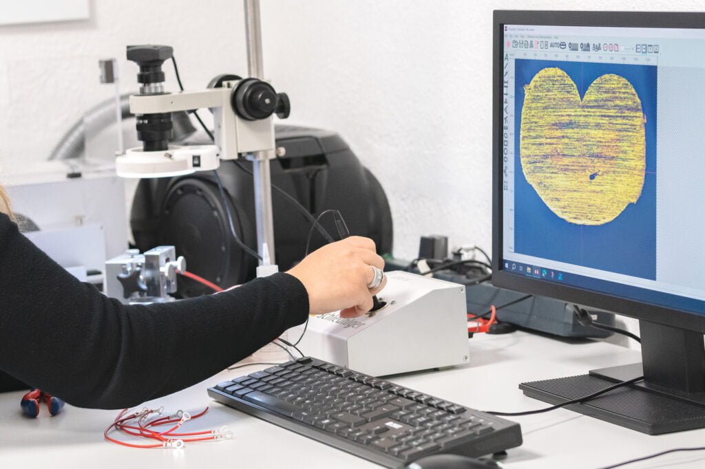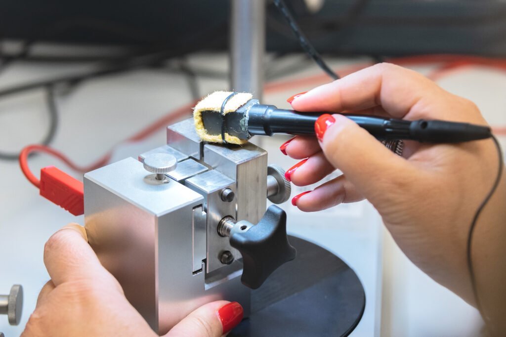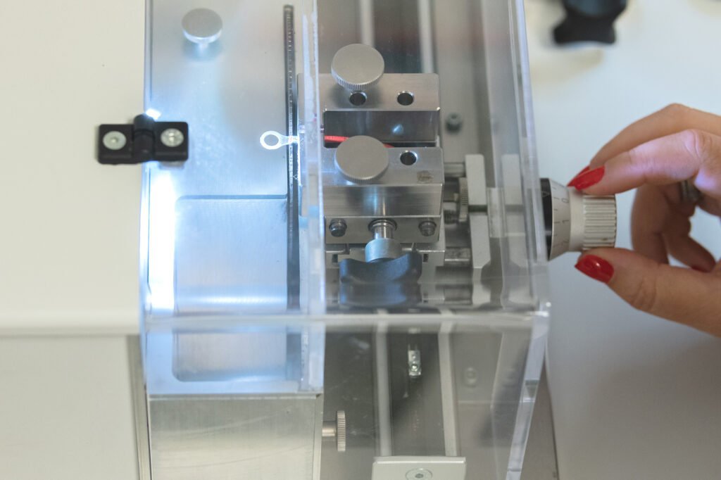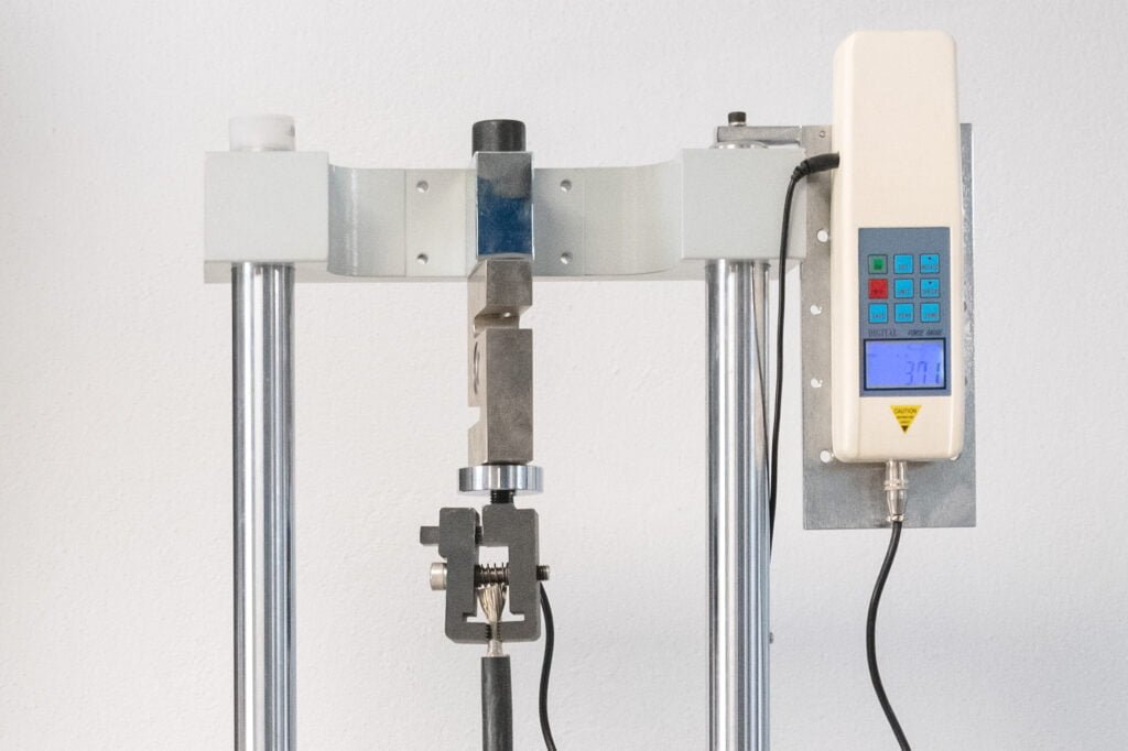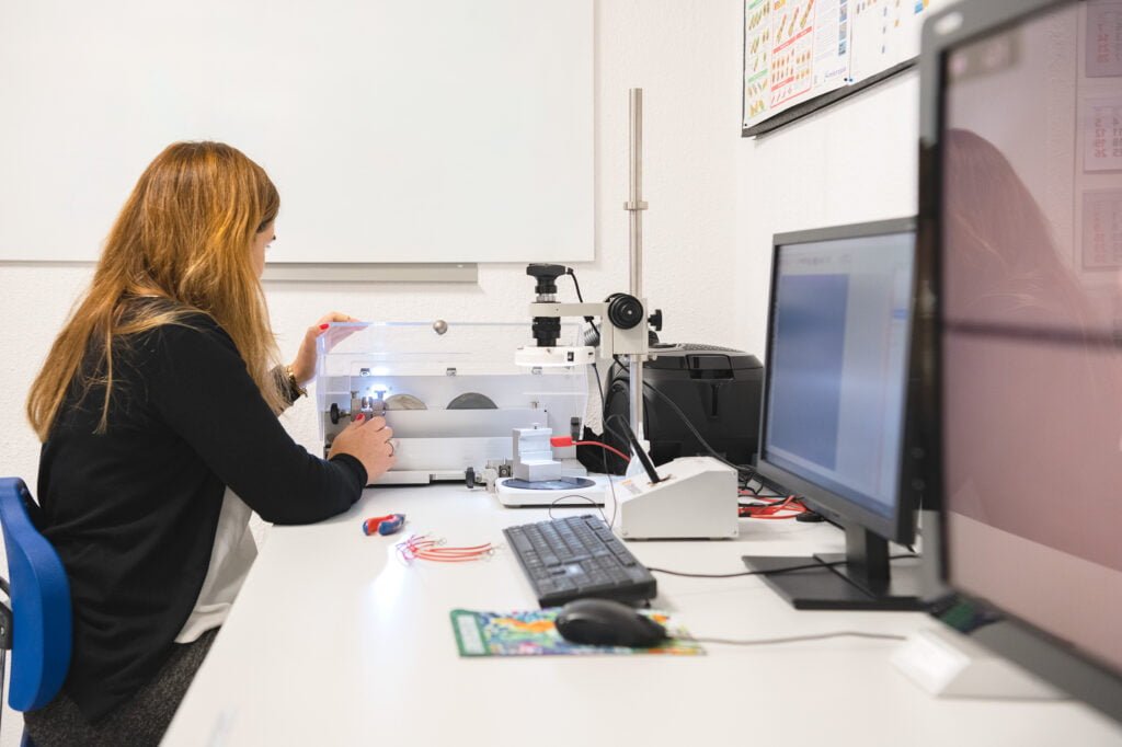 We have our own laboratory, with temperature and humidity recording, where we can carry out micrographic analyses of the crimping tensile and fatigue tests up to 20,000N (2ton) of force, continuity and strength measurements, as well as video inspection with zoom up to 122x magnification.